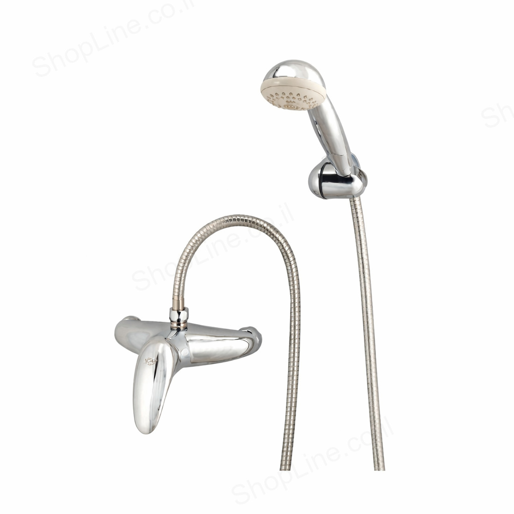 סוללה למקלחת מסדרת מאי (May) מבית יועם. דגם 6595. מחסנית קרמית, חיבור 1/2" BSP. עומד בתקן ישראלי 5452 ו-ISO 228. כולל מסנן מים וחסכן מים.