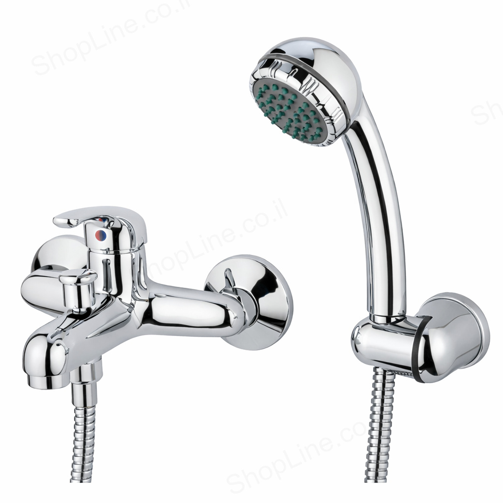 סוללת קיר לאמבטיה קומפלט מסדרת ענבר של מדגל (Madgal), דגם 69010. כולל מתלה מתכוונן, צינור גמיש ומזלף. מחסנית קרמית. גימור כרום ניקל. תו תקן ישראלי 5452. אחריות 5 שנים.