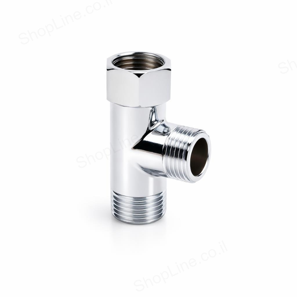 מפצל T כרום 1/2 אינץ' עם אום מסתובב, חיבורים: 1/2 ח. – 1/2 ח. – 1/2 פ. עשוי פליז בציפוי כרום. תוצרת חמת.