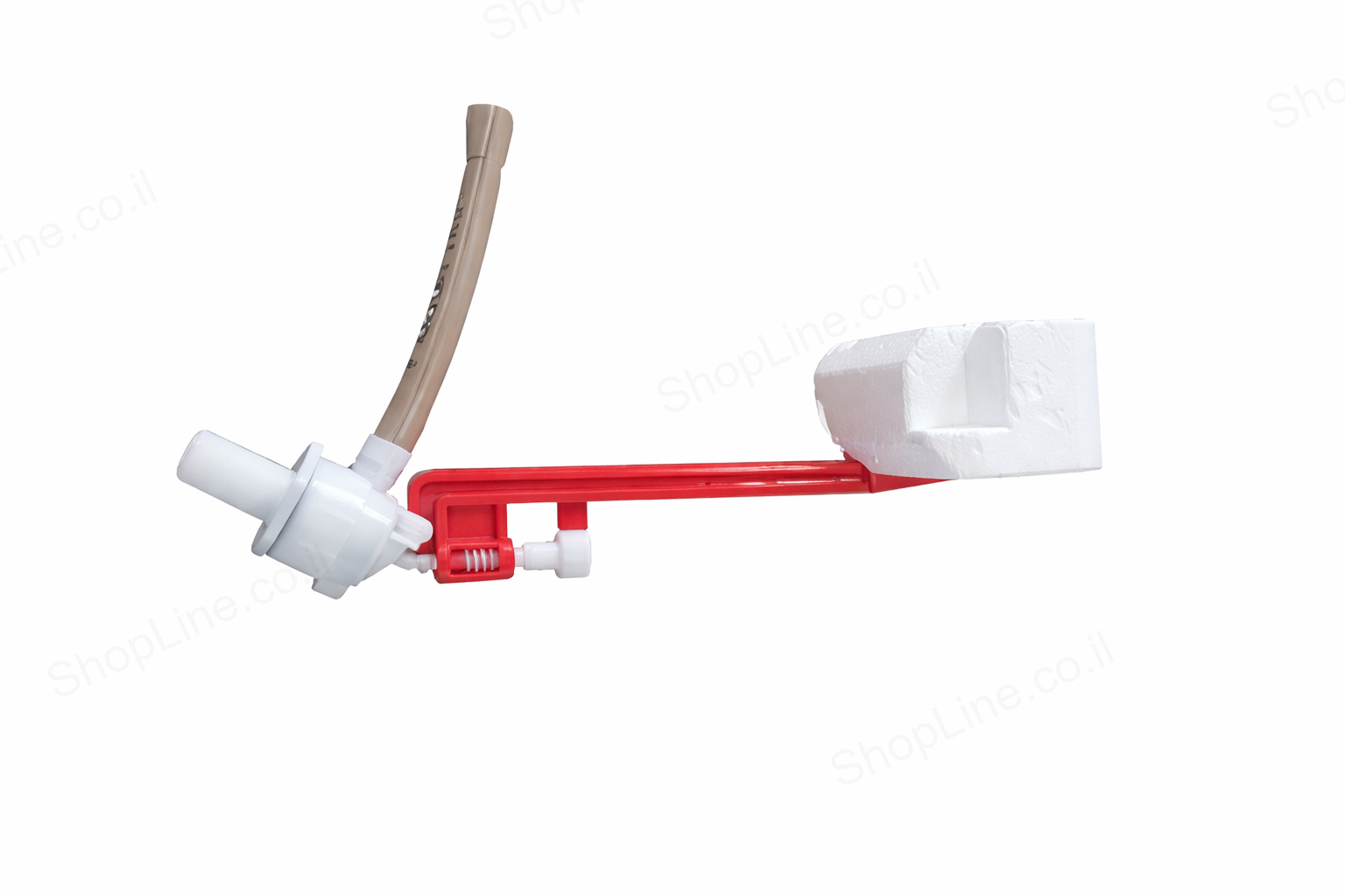 מצוף קצר אדום לניאגרה גלויה, מק"ט 03177. מנגנון מילוי מים (שסתום מצוף) המותקן בתוך מיכל ההדחה ושולט על כמות המים הנכנסת למיכל. הגרסה הקצרה מתאימה למיכלי הדחה קומפקטיים עם מרחב פנימי מוגבל. עשוי פלסטיק עמיד לחומרי ניקוי ולמים. התקנה פשוטה ללא כלים מיוחדים.