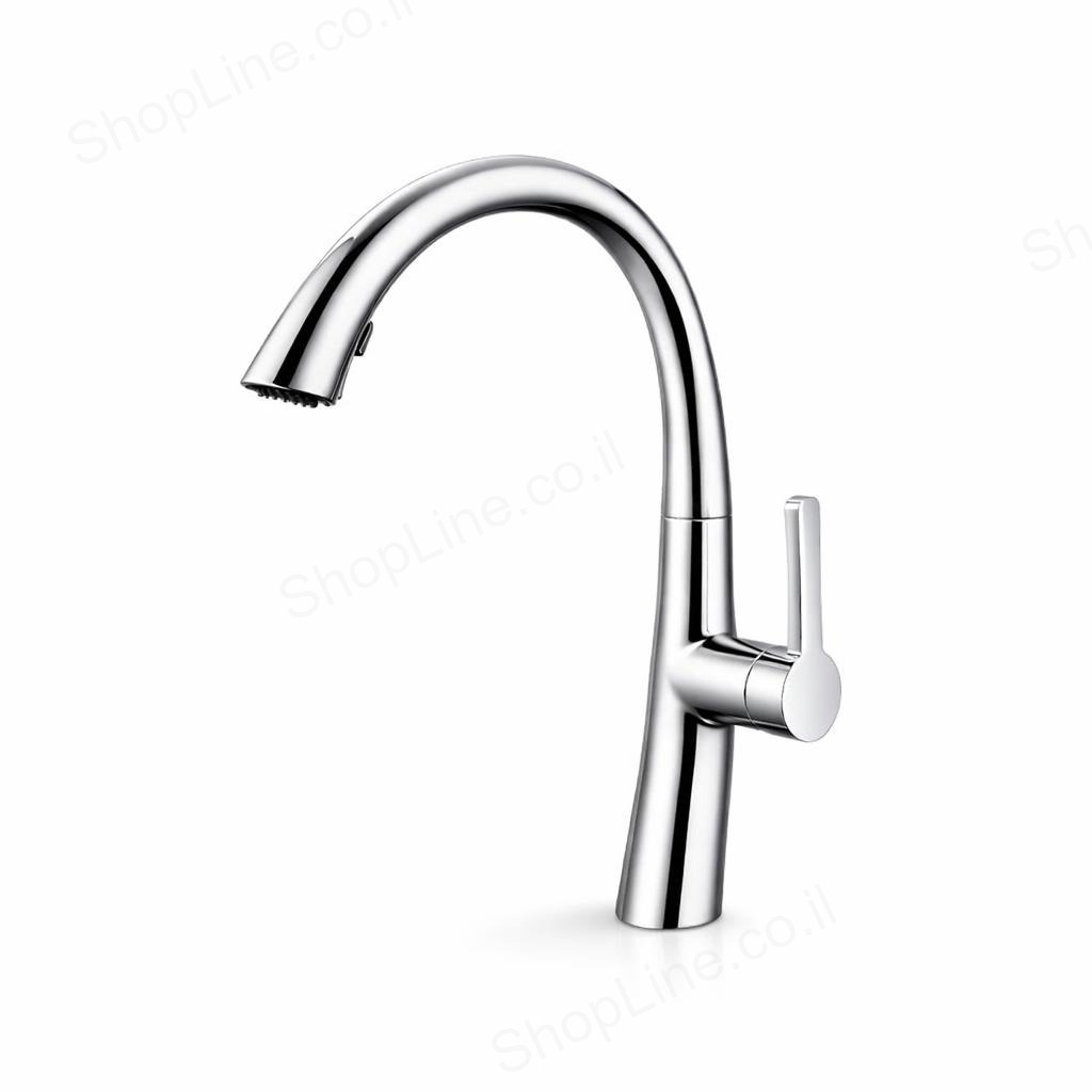 ברז מטבח נשלף דו מצבי מסדרת קונקס (Konex) מבית IKON. פרח מסתובב נשלף, מנגנון Heavy Duty, גימור ניקל.