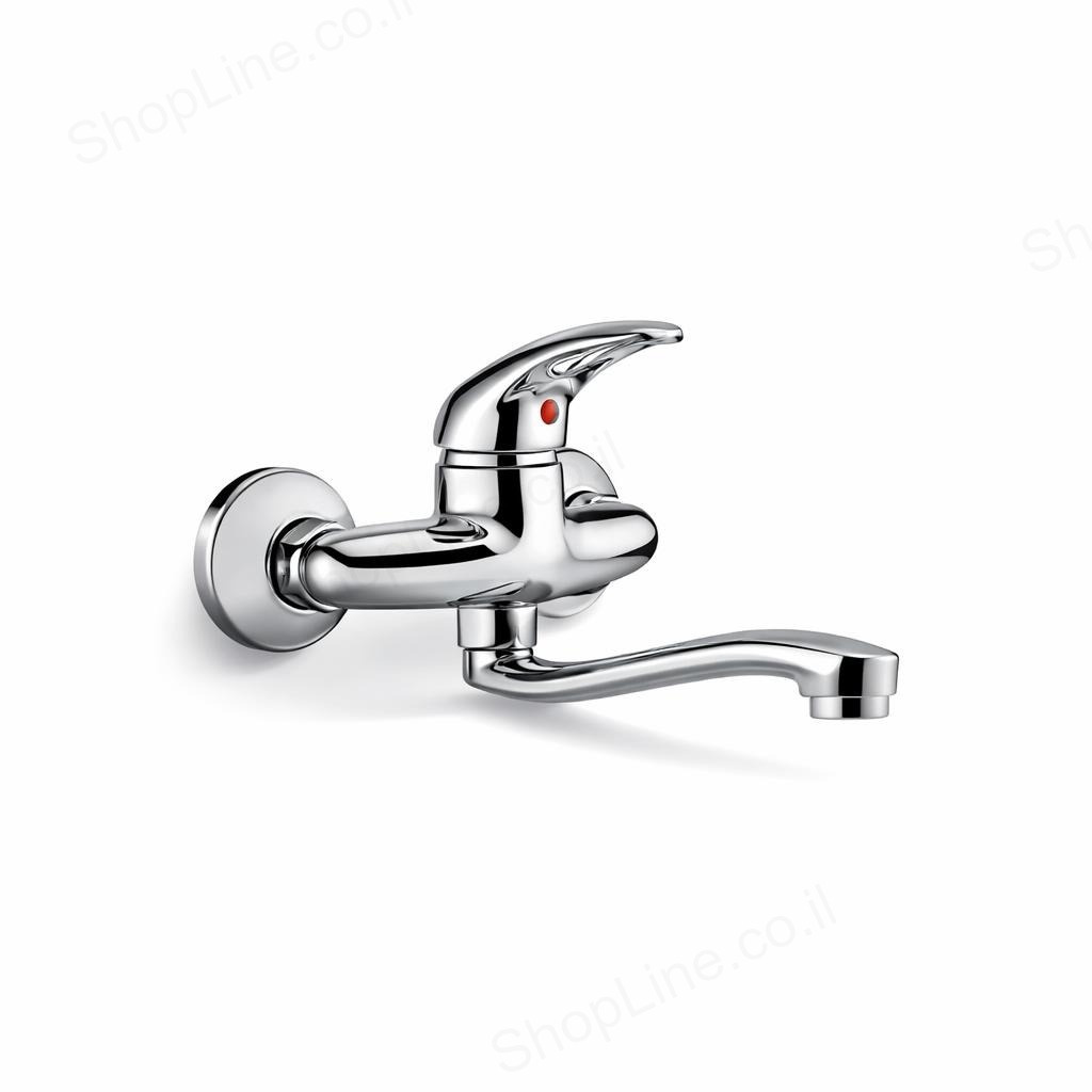 מיקסר קיר Royal בגימור כרום, זרוע קצרה. מתאים לכיור מטבח או אמבטיה.